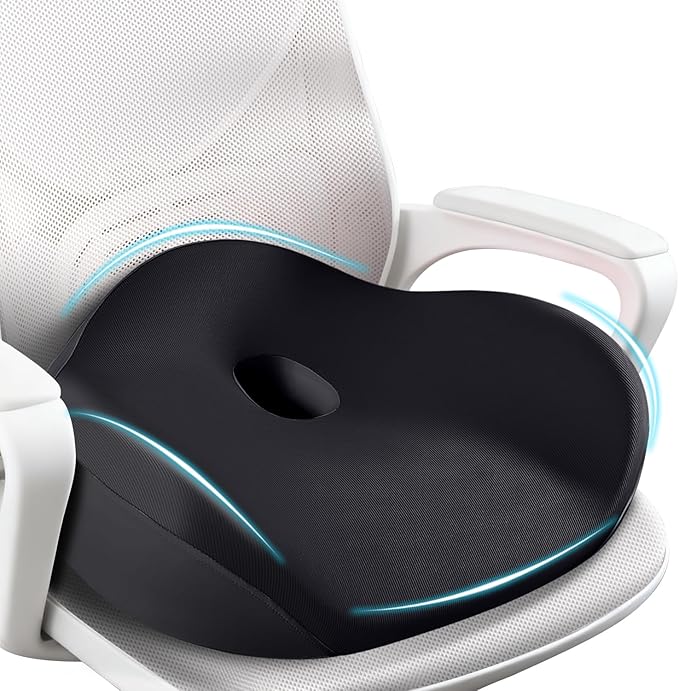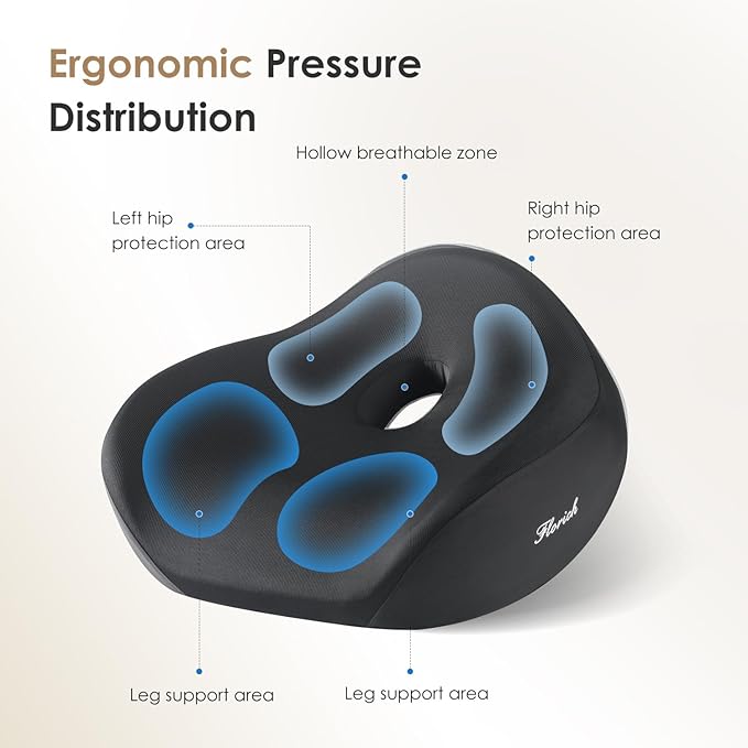 FLORICH Seat Cushion, Memory Foam Seat Cushion for Car Office Chair, Ergonomic Office Seat Chair Cushion for Sciatica Pain Relief, Larger Seat Cushion for for Long Sitting Office Workers - Black