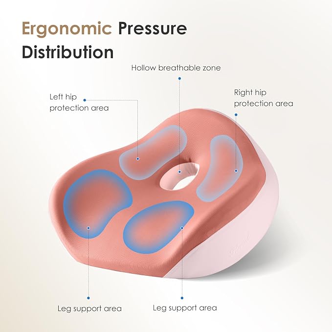FLORICH Seat Cushion, Memory Foam Seat Cushion for Car Office Chair, Ergonomic Office Seat Chair Cushion for Sciatica Pain Relief, Larger Seat Cushion for for Long Sitting Office Workers - Pink