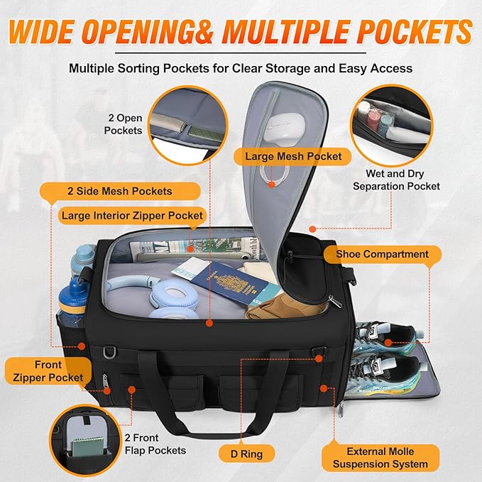 - 【ULTIMATE ALL-PURPOSE GYM BAG】Designed for those who value durability, functionality, and practical style. More just a mens gym bag— it served as gym backpack, carry-on luggage, airplane duffle, weekender bag, hospital bag or oversize travel bag. Your reliable companion for fitness training, weekend getaways, outdoor adventures, or as an organized everyday carry solution. A perfect gift for husband, dad, son, friend, yourself on occasions such as Father's Day, Valentine's Day, Christmas.