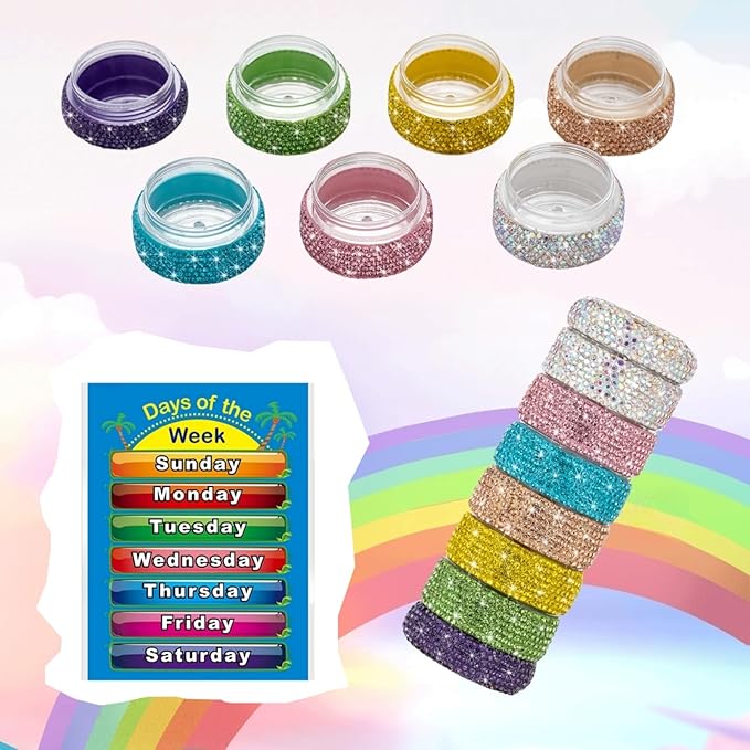- Dual-purpose:This crystal-embellished organizer transcends medication storage, with versatile compartments perfectly sized for rings, earrings, and delicate pendants. Transition seamlessly from morning vitamins to evening accessories .Where practical healthcare meets portable glamour, keep both wellness and wonder within arm's reach