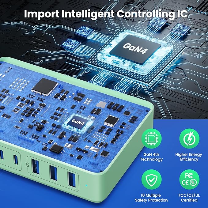 - 【Latest GAN Ⅳ Chip Technology Charger Station】The USB C charger adapted GaN Ⅳ generation chip technology, built-in multi-protection system and premium microchips. With higher energy efficiency, higher resistance to radiation and upgraded heat dissipation, Gallium Nitride (GaN) makes our chargers smaller and safer without sacrificing a drop of power. Trustworthy Charging Station with 3 Years Warranty!