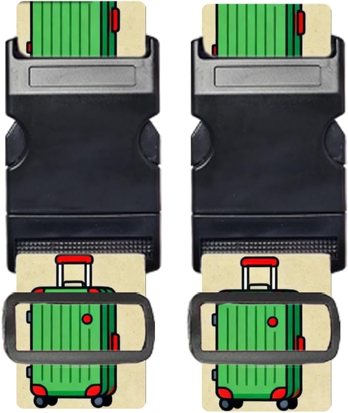 - You will get Luggage Straps of 2 Set featuring a pattern with sunglasses, airplane and suitcase elements.
