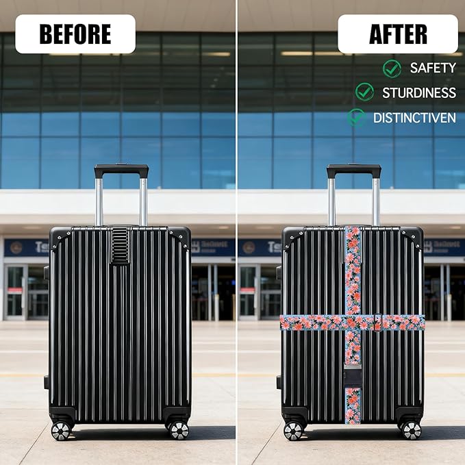 Nuxovilar Luggage Straps of 2 Set Pink Flowers Pattern, 1.96x90.5 inches - Luggage Straps for Suitcases, Fit for Summer Travel, Beach Trips, Daily Use