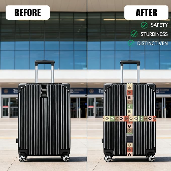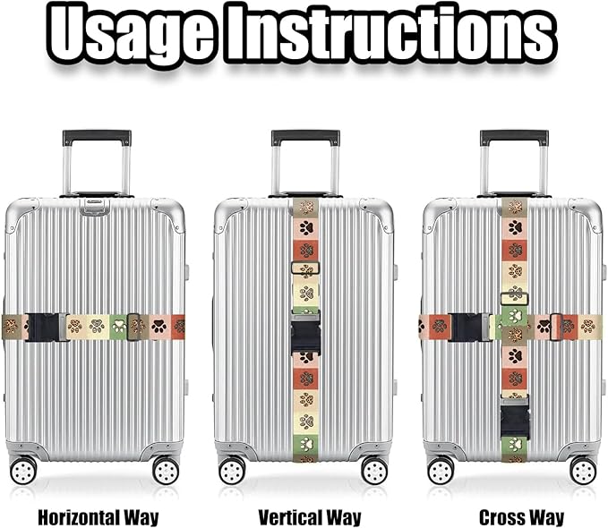 - You will get Luggage Straps of 2 Set featuring a pattern of colorful paw prints.