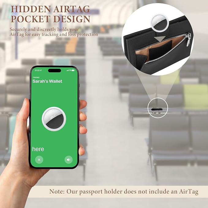 - Hidden Airtag Pocket: Customized with hidden compartments for your Airtag (AirTag not included), real-time tracking of wallet location via Bluetooth, ensuring peace of mind against loss