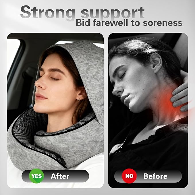 - 【360° All-Around Support for Pain-Free Travel】 Engineered with high-quality memory foam, this pillow cradles your head and neck, providing even and stable support in any position. Effectively relieves pressure points during long flights, car rides, or office naps, so you arrive feeling refreshed and free of neck strain.