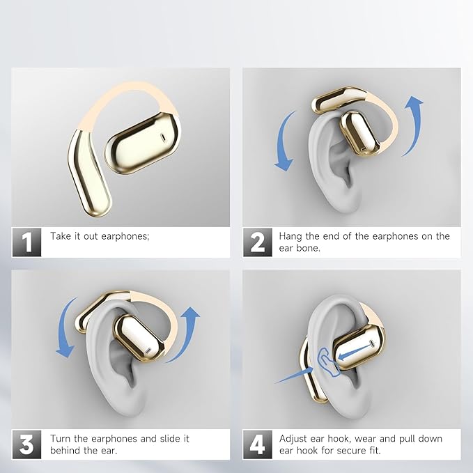 - Open Over Ear Design: YYK-Q16 Open Ear Bluetooth Headphones feature a revolutionary ergonomic design, allowing you to enjoy your favorite music while staying aware of the surrounding environment. With this innovatively designed sports open earbuds, you can hear external sounds clearly without compromising on comfort. The open bluetooth earphones has a unique shape, without being plugged into the ear canal, no longer pain your ear because of long time wearing.