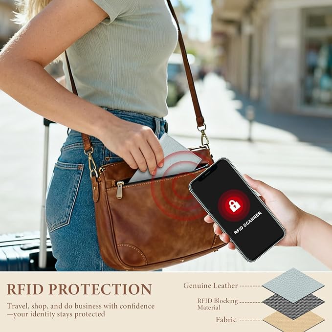- RFID Protection: Integrated with advanced RFID shielding technology to protect your personal information from unauthorized scans, ensuring privacy and safety. Note: Blocks RFID only; compatible with AirTag tracking