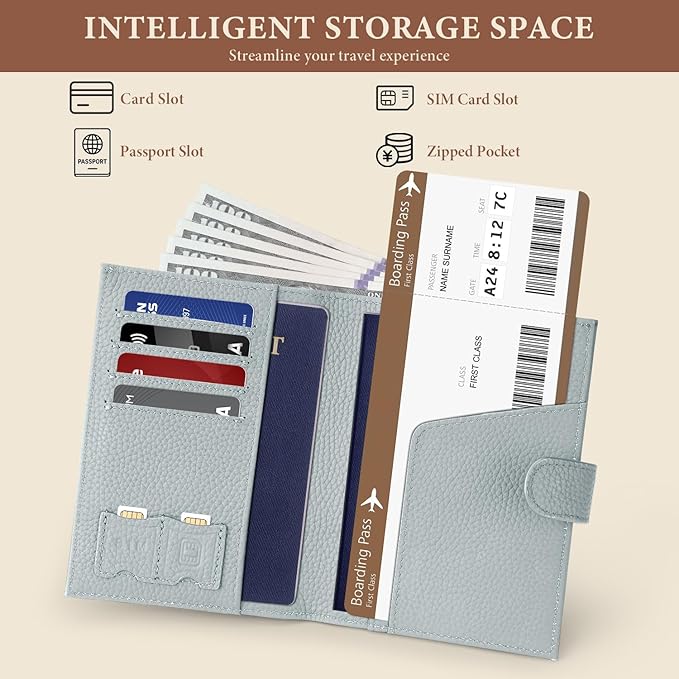 - Intelligent storage space: Optimized layout includes 2 passport slots, 4 card slots, a flight ticket pocket, cash bag, zipper coin bpocket and 2 SIM card slots—perfect for the orderly traveler