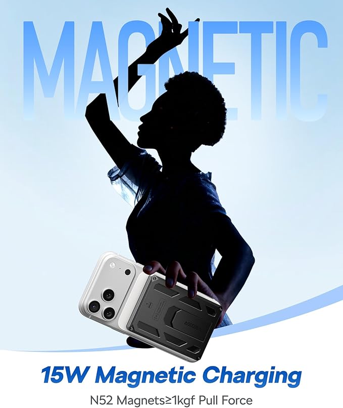 - 【Multi-Angle Stand for Hands-Free】Maximize convenience with the built-in, adjustable kickstand of the charging bank. Enjoy hands-free entertainment and video calls in both portrait and landscape mode. Perfect for watching movies, following video recipes, attending meetings, playing games or browsing social media—all while your phone charges wirelessly. This battery pack charger portable isn’t just about function; it’s a stylish accessory that complements your tech ecosystem and active lifestyle.