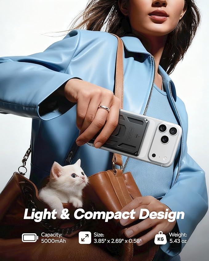 - 【20W Wired & 15W Wireless Fast Charging】Experience rapid, versatile charging. Get a full day's power from the 5000mAh battery. The 20W PD wired power bank fast charging refuels your device at top speed, while the strong magnetic alignment provides a perfect "snap-on" connection for up to 15W high-speed wireless charging. Fully compatible with magnetic wireless charging for iPhone 17/16/15/14/13/12 series. Note: Magnetic function of battery charger does NOT supports normal phone cases.