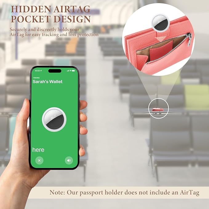 - Hidden Airtag Pocket: Customized with hidden compartments for your Airtag (AirTag not included), real-time tracking of wallet location via Bluetooth, ensuring peace of mind against loss