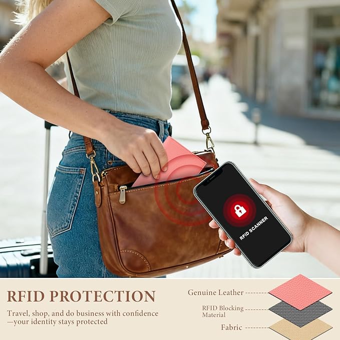 - RFID Protection: Integrated with advanced RFID shielding technology to protect your personal information from unauthorized scans, ensuring privacy and safety. Note: Blocks RFID only; compatible with AirTag tracking