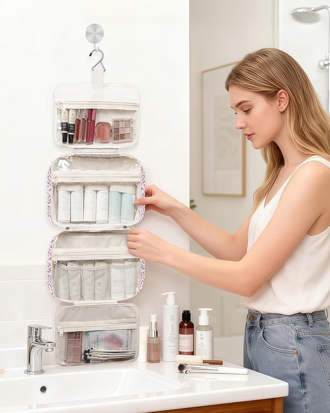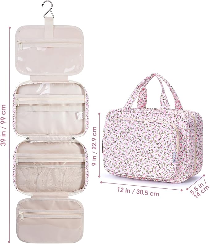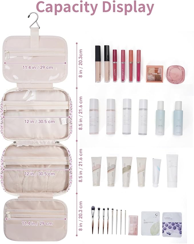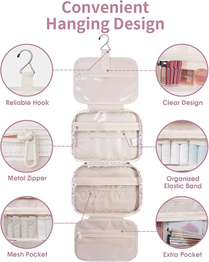 - NOT BULKY DESIGN - Large Capacity yet compact design, weighing 16 ounces. large metal hook allows hanging the toiletry case from towel rack, coat hook or wherever is available, making your toiletries and cosmetics displayed well for easy access