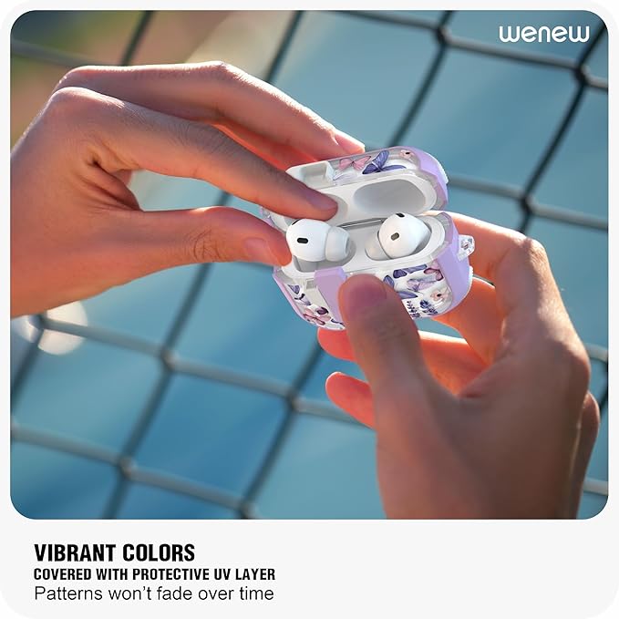 WENEW for AirPods Pro 3 Case (2025) Cover Secure Lock Automatic Snap Switch Clip Cleaner Kit Lanyard Women Stylish Flower Hard Shell Full Body Front LED Visible (Purple Butterfly, AirPods Pro 3)