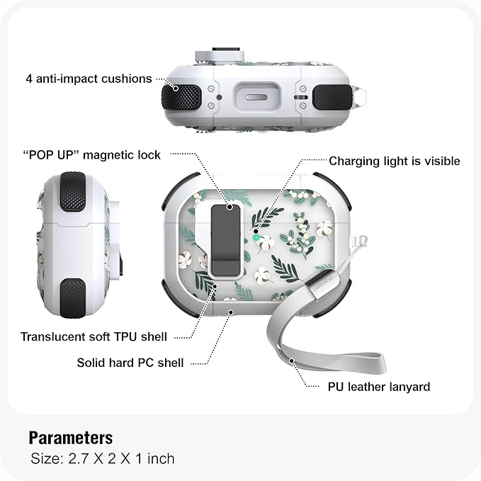 - 【Important features】1. "One-click open" automatic magnetic lock, 2. Four separate air cushions, 3. Translucent body covers minor scratches on your AirPods, 4. Charging light is visible, 5. Compatible with wireless charging, 6. Without watermarks.