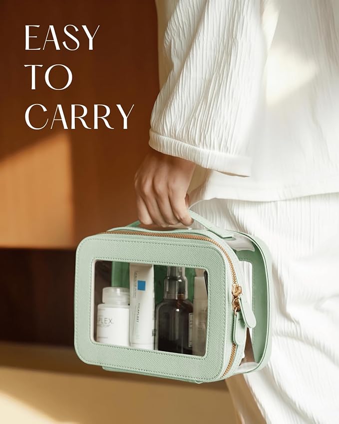 - Clear Design & Easy Access: The travel cosmetic bag is designed with a clear viewing window, facilitating effortless item location and quick accessibility. Its compact size also makes it TSA-friendly for air travel.