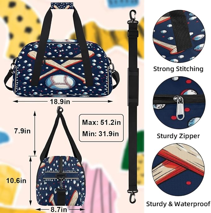 Kids Duffle Bag Girls Boys Baseball Sports Weekender Overnight Bag,Lightweight Duffel Bags for Traveling Gym Sport Dance
