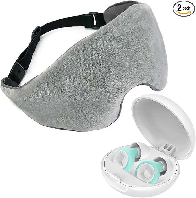 - Complete Sleep Bundle – Enjoy deep relaxation anywhere with this 2-in-1 set: a weighted eye mask and soft silicone earplugs to block light and reduce noise naturally.