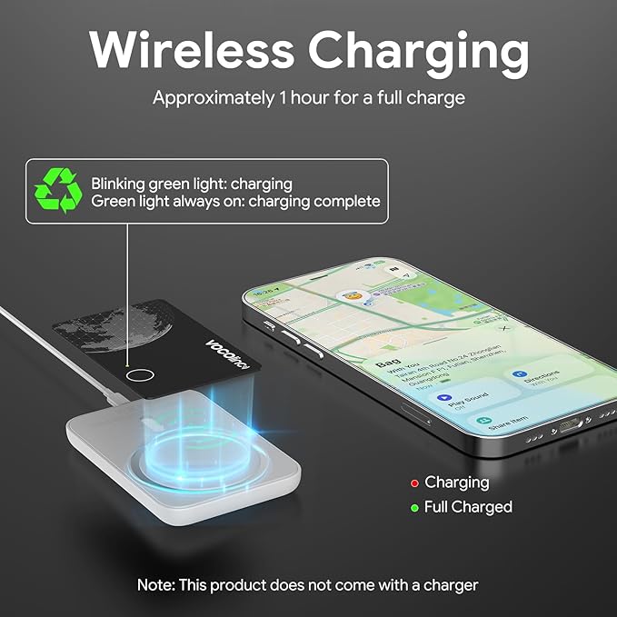 - 【Long Battery Life, Wireless Charging, and IP68 Waterproof】:With a single charge, the tracker provides up to 6 months of battery life. The VOCOlinc Air Card Tag Pro can be easily charged using any Qi-certified magnetic charger, making it convenient and reusable. It also has a low battery reminder that alerts you when it’s time to recharge. This tracker is built to last with an IP68 rating for water and dust resistance.