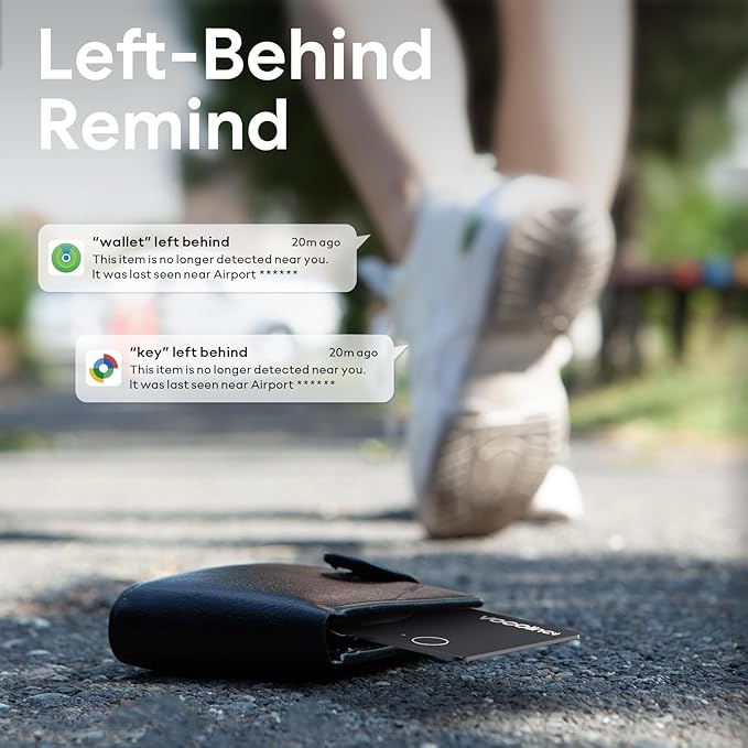 - 【Find Distant Items – Global Network Tracking】:The VOCOlinc Air Card Tag Pro utilizes the Google Find Hub or Apple Find My network, covering millions of compatible devices worldwide. Even if your item is out of Bluetooth range, you can still track it without any extra fees or subscriptions.