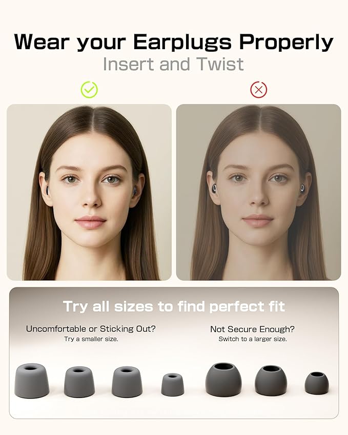 - 【All-Day Comfort for Sensitive Ears】Selouj ear plugs include two ultra-comfortable tip options: AirCloud memory foam for soft, pressure-free sleep, and 3D silicone tips for filtering loud noise while preserving sound clarity at concerts or events. Whether you're sleeping, commuting, or focusing, enjoy a perfect fit that lasts