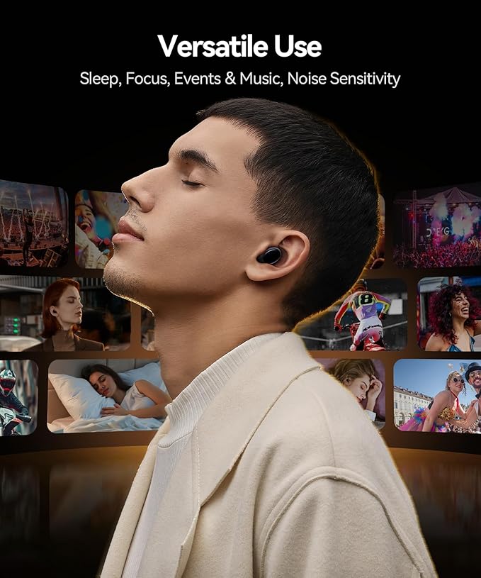 - Effective Hearing Protection: Ear plugs for sleeping use intelligent frequency filtering, engineered for hearing care. Ear plugs for noise reduction blocking harsh sounds (like airplane tinnitus relief ). With our sleep ear plugs, prevent discomfort during flights or altitude changes. Ear plugs for concerts deliver crystal-clear sound with high fidelity while protecting your hearing. Sleeping ear plugs are perfect companion for peaceful sleep, comfortable travel and immersive music experience