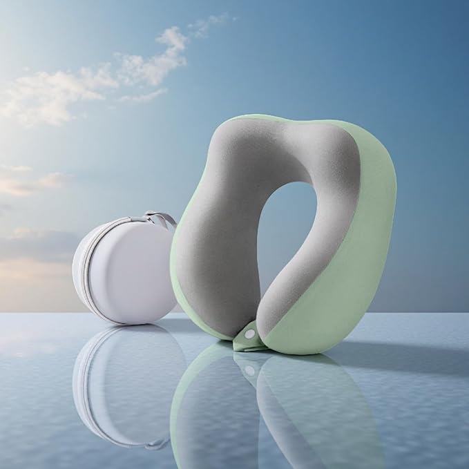 Ergonomic U-Shaped Memory Foam Neck Pillow for Travel & Office with Carry Pouch, Provides Neck Support for Airplane, Train, Anti-Sideturn Sleep (Green)