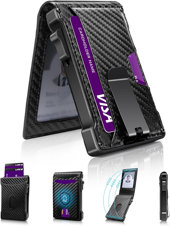 MNGARISTA Wallet for Men,Slim Minimalist Bifold Wallet with RFID Blocking,Pop-Up Credit Card Holder with ID Window & Money Clip,Magnetic Flip Metal Wallet for 11-13 Cards,Gifts for Men-Carbon Fiber