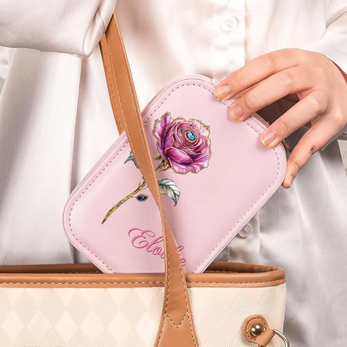 - Custom Birth Flower & Name: Adorned with an oil-painting style birth flower and a customizable name, this travel jewelry box adds a personal touch to your travel routine. It a unique and stylish storage piece for women and girls