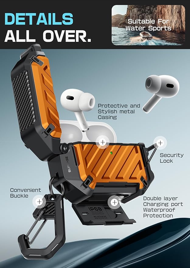 - Double locks design in the charge port and the connection armors your airpods adhering to IP68 waterproof level of 10 feet.