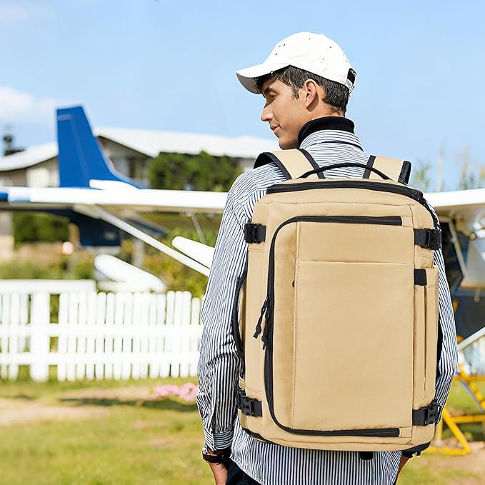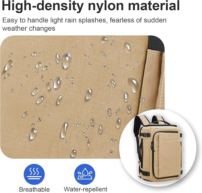 - 【HIGH QUALITY MATERIAL】Crafted from water-repellent nylon, this carry on travel backpack effectively shields contents from rain and humidity. The breathable back of the flight approved travel backpack features soft padding for optimal support, while adjustable shoulder straps ensure comfortable carrying. Built with robust zippers and reinforced stitching for lasting durability.