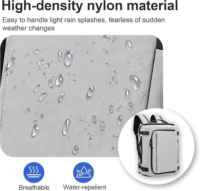 - 【HIGH QUALITY MATERIAL】Crafted from water-repellent nylon, this carry on travel backpack effectively shields contents from rain and humidity. The breathable back of the flight approved travel backpack features soft padding for optimal support, while adjustable shoulder straps ensure comfortable carrying. Built with robust zippers and reinforced stitching for lasting durability.