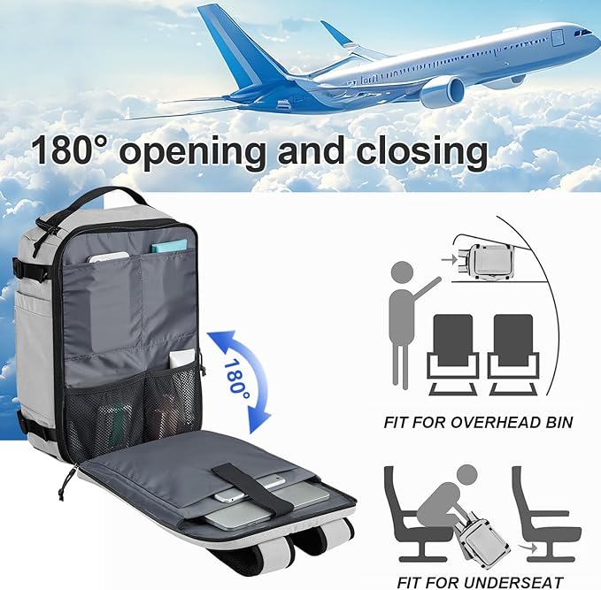 - 【PRACTICAL CARRY ON BACKPACK】This backpack meets the boarding requirements and can be 180° opened and folded like a suitcase, which can quickly pass through airport security and is specially designed for plane travel. The convenient luggage strap secures your bag to your suitcase, it's up to you to decide whether to use it as a laptop backpack/luggage bag/travel bag/teacher backpack/nurse backpack.