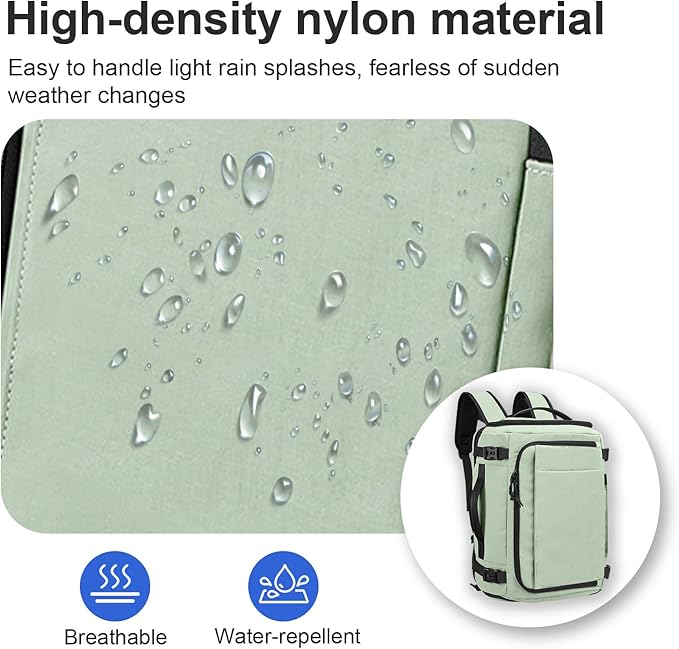 - 【HIGH QUALITY MATERIAL】Crafted from water-repellent nylon, this carry on travel backpack effectively shields contents from rain and humidity. The breathable back of the flight approved travel backpack features soft padding for optimal support, while adjustable shoulder straps ensure comfortable carrying. Built with robust zippers and reinforced stitching for lasting durability.