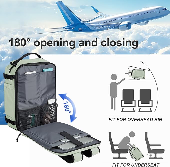 - 【PRACTICAL CARRY ON BACKPACK】This backpack meets the boarding requirements and can be 180° opened and folded like a suitcase, which can quickly pass through airport security and is specially designed for plane travel. The convenient luggage strap secures your bag to your suitcase, it's up to you to decide whether to use it as a laptop backpack/luggage bag/travel bag/teacher backpack/nurse backpack.