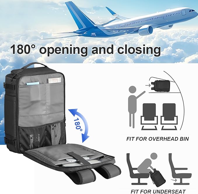 - 【HIGH QUALITY MATERIAL】Crafted from water-repellent nylon with 900D PU coated, this carry on travel backpack effectively shields contents from rain and humidity. The breathable back of the flight approved travel backpack features soft padding for optimal support, while adjustable shoulder straps ensure comfortable carrying. Built with robust zippers and reinforced stitching for lasting durability.
