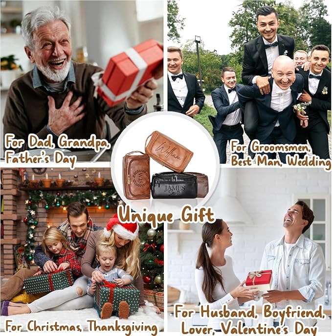 - [Meaningful and Thoughtful Gift] - Struggling to find the perfect gift for men? Our personalized men's travel bag toiletry kit with custom name engraving is a thoughtful and one-of-a-kind gift for your best man, son, wedding groomsman, father-in-law, dad, husband, boyfriend, brother, friend, or co-worker. It's suitable for various occasions like Father's Day, birthdays, Christmas, weddings, and anniversaries.
