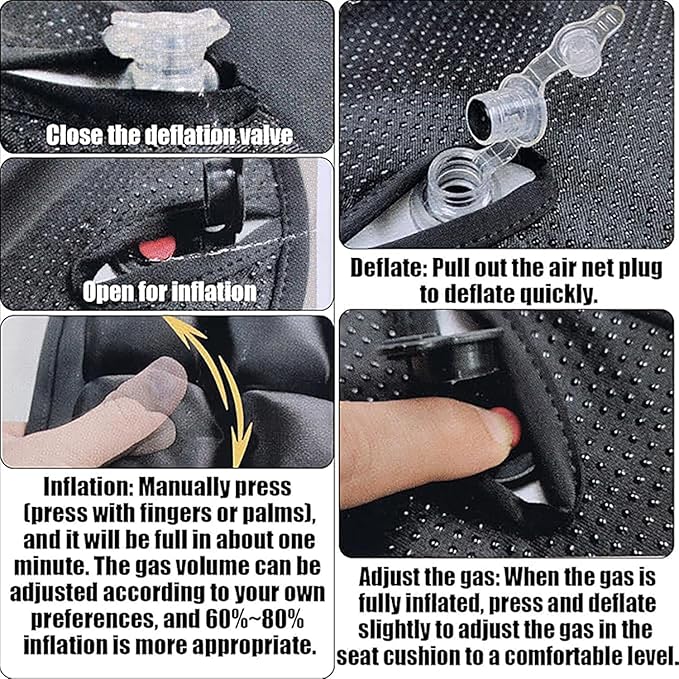 - ✅Use the travel cushion's built-in air pump and release button to inflate or deflate the cushion and easily adjust the firmness of the cushion, Quick inflation or deflating using, ensuring the perfect comfort level for your needs