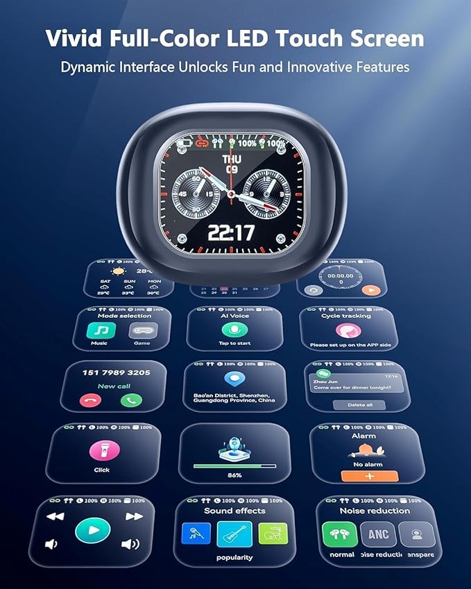 - Intelligent Touch Screen - The earbuds feature an intelligent touch screen that allows for easy control of your music and calls, eliminating the need to fumble with buttons.Revel in your music and handle calls effortlessly, thanks to a finely-tuned microphone system designed to precisely pick up your voice while effectively reducing background noise
