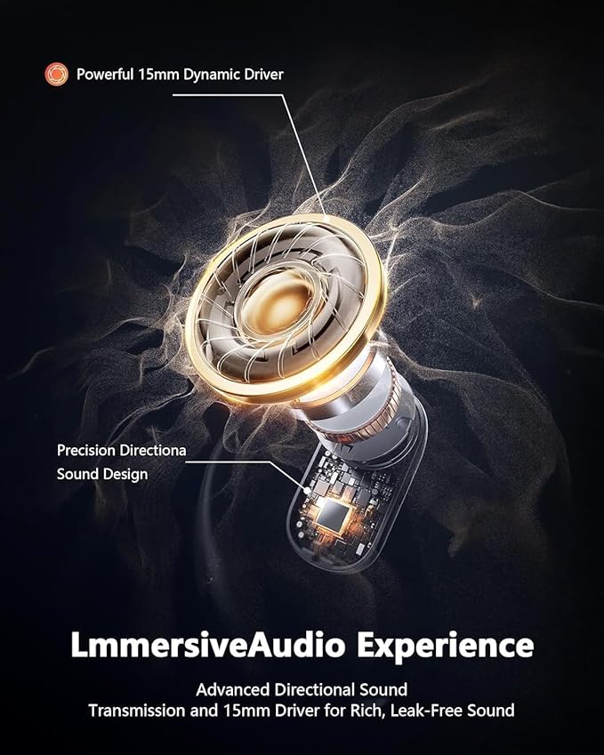 - Powerful Stereo Sound & Clear Call: With built-in 16.3mm dynamic drivers, you can immerse yourself in rich audio that makes you to perceive subtle difference in the music. Enjoy the good reproduction of instruments and vocals. These advanced drivers also excel in ensuring crystal-clear communication. By accurately capturing the voice, these open ear wireless bluetooth earpieces transform into a conduit of unobstructed conversations, as if you were speaking face to face